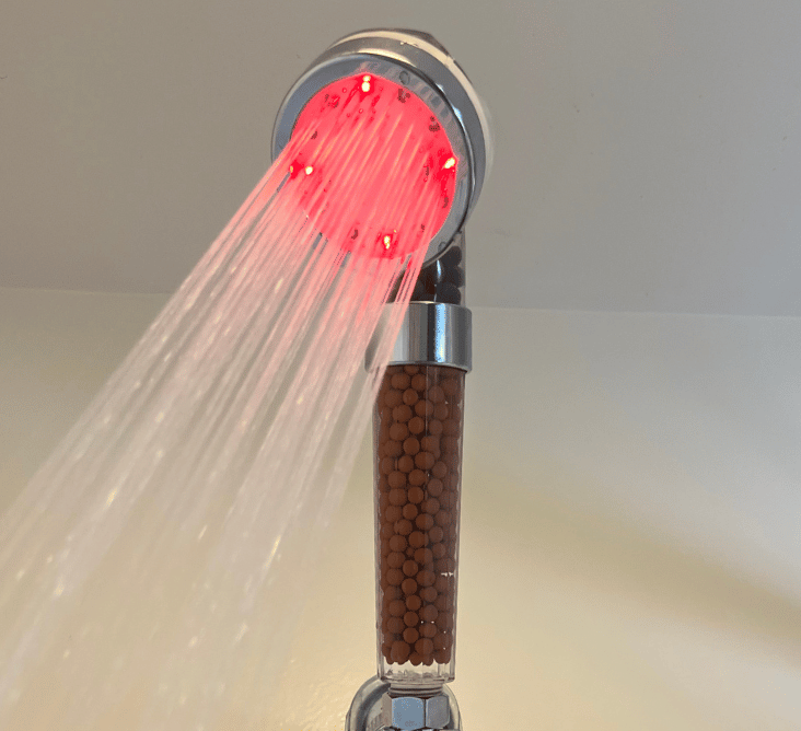 Die stortkop gebruik ingeboude LED's wat deur watervloei aangedryf word, tesame met minerale klippe vir filtrasie, wat die suiwerheid en versagting van die water verbeter terwyl dit 'n visuele ligvertoning byvoeg.